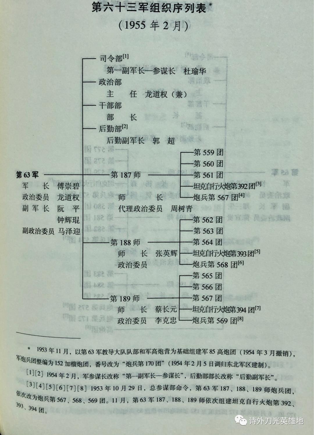 1951年2月10日,第63军改称中国人民志愿军第63军,下辖第187、第188、第189师及各师炮兵团和军炮兵团、军教导团,进至辽宁凤凰城地区集结。