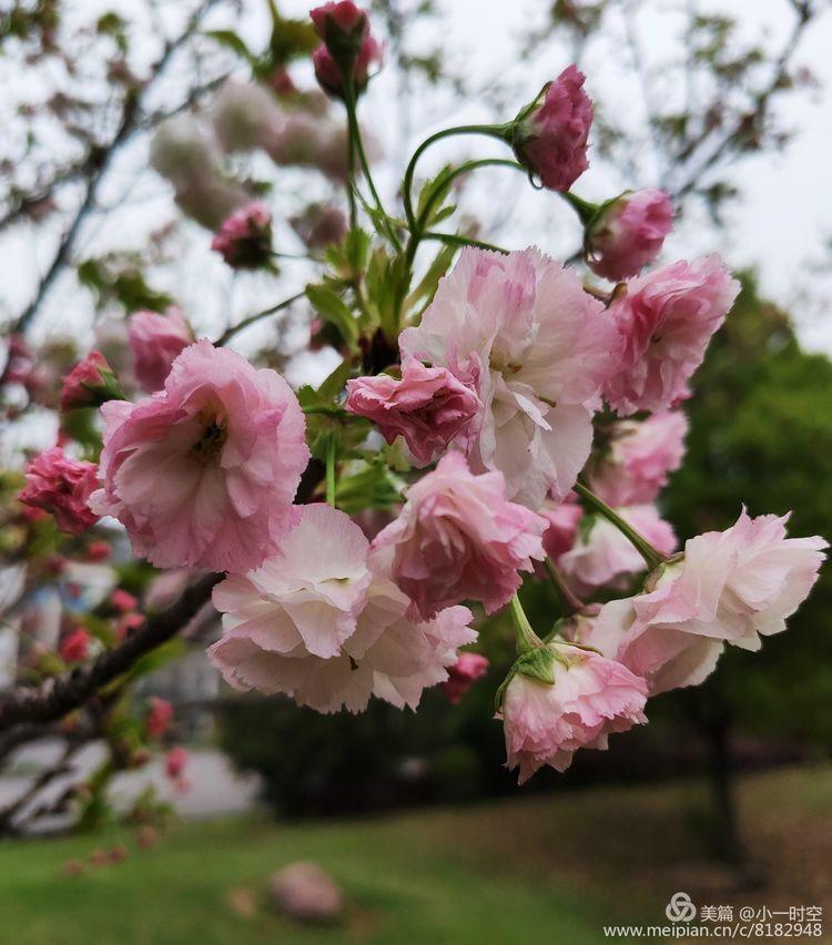 晚樱花单或重瓣、下垂,粉红或近白色,芳香,2-5朵聚生,晚樱看上去更艳丽。