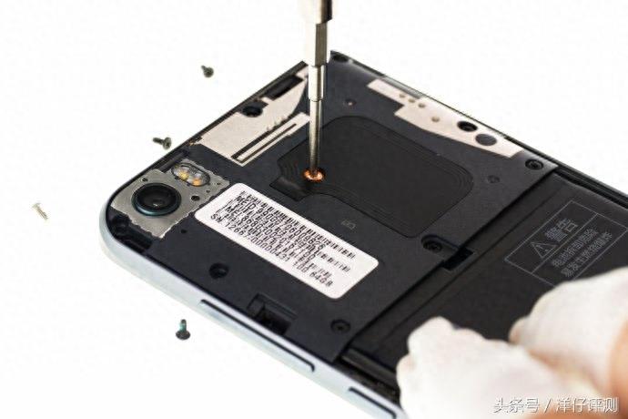 由于机身没有螺丝,拆解智能从后壳入手,后壳采用扣卡式设计,使用吸盘很容易就能打开。后盖上没有任何部件。