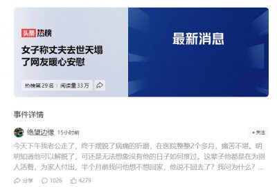- 丧夫之痛,爱将永远留在心中!女子称丈夫去世天塌了网友暖心安慰