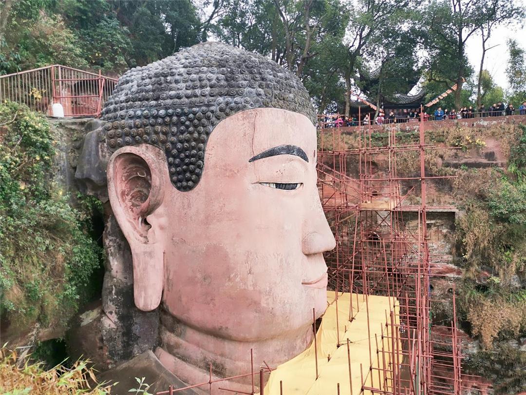 可以说,大佛凝结着古代匠人的无上智慧。此外,他们还修建了一座近百米高的大像阁,为大佛遮风避雨、防止侵蚀,可惜大像阁在明代毁于战乱。