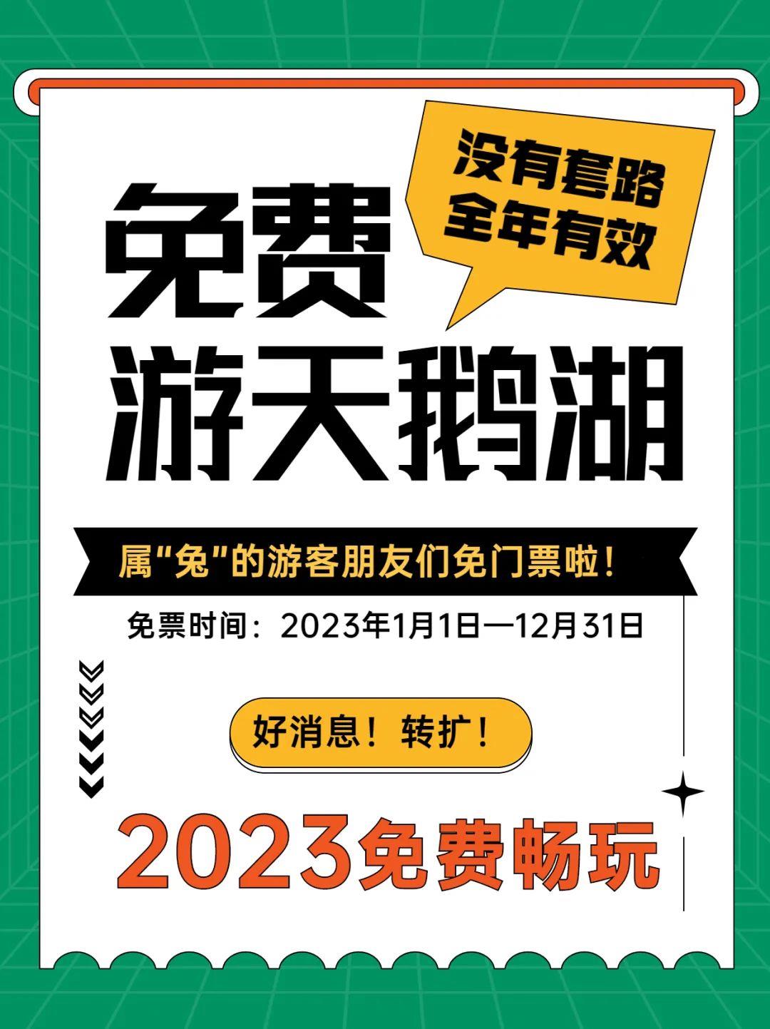 免票规则:凡是中华人民共和国居民身份证上出生时间属于“兔”属相的游客朋友,凭本人身份证原件经工作人员检验通过后皆可免景区门票入园。