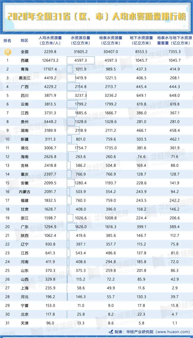 2021年我国水资源总量29520亿立方米,约占全球水资源的6%,仅次于巴西、俄罗斯、加拿大、美国和印度尼西亚,居世界第6位。