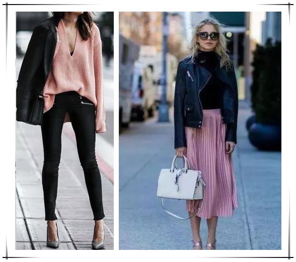充满酷劲的黑色碰上温柔似水的粉,竟然毫无违和感,让整体穿搭甜美与帅气并兼,削弱粉色带来的可爱感,想尝试粉色却又觉得粉色过于甜腻的,可以试试粉+黑色系搭配。