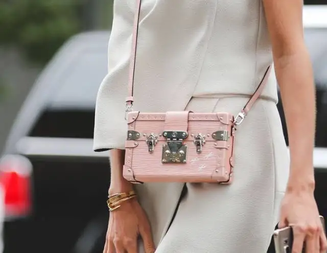 如图小小的一个方形包包,简单又不失柔美感,既不会过于突兀,又带着一丝丝的甜美感,但是在搭配时建议衣服色系以上面介绍为主,过于艳丽的衣服色系蓝色、黄色搭配粉色,一般人是驾驭不住,以简约小清晰为主更适宜。