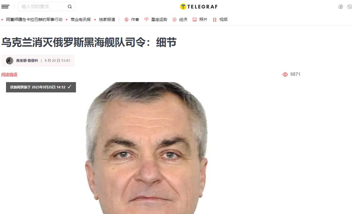 乌克兰tsn新闻网、《乌克兰真理报》、乌克兰《电讯报》9月25日报道,乌克兰特种作战部队9月25日宣布:俄罗斯黑海舰队塞瓦斯托波尔总部遭到乌克兰的导弹袭击,共有34名俄罗斯军官被杀,包括俄罗斯黑海舰队司令索科洛夫海军上将!