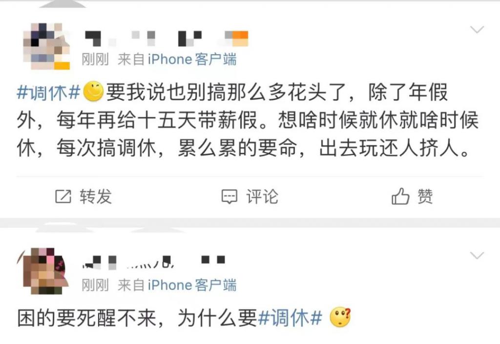 其实,人们现在对于调休的怨言,很大程度是针对 " 放假了工作却要继续做,不能休息 " 的现状和 " 不敢跟公司提休年假,身边的人都不太敢休 " 的顾虑。