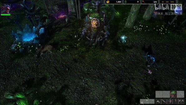 在他的演示视频里,光是从场景就能明显感觉出质感的差距。而且,这不是一个场景展示的空壳,技能系统、等级系统等等,沐禾都做出来了。