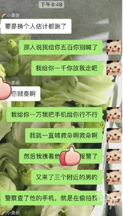 见我不松手,他说 " 我给你 10000 我把手机都给你,你放我走吧 "。