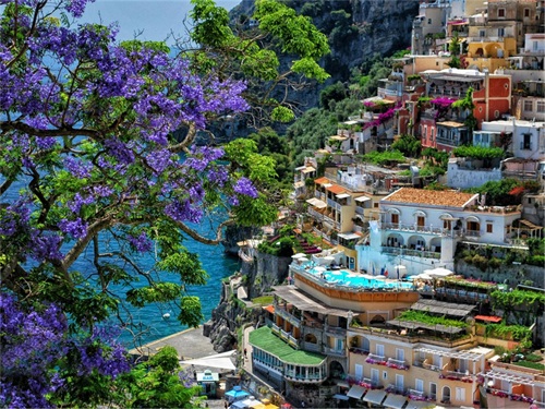 位于意大利阿玛菲海岸,是个非常梦幻的海滨小镇,沿着悬崖而建的小房子透着彩虹的色调,紧邻着湛蓝色的海水,构成一幅令人永生难忘的画面。