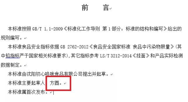 谁是“方圆”?呵呵。这么正式的“企业标准”上,对食品安全这么重要的文件上,起草人居然是一个假名!初哆咪老板方媛,连敷衍都懒得敷衍了。