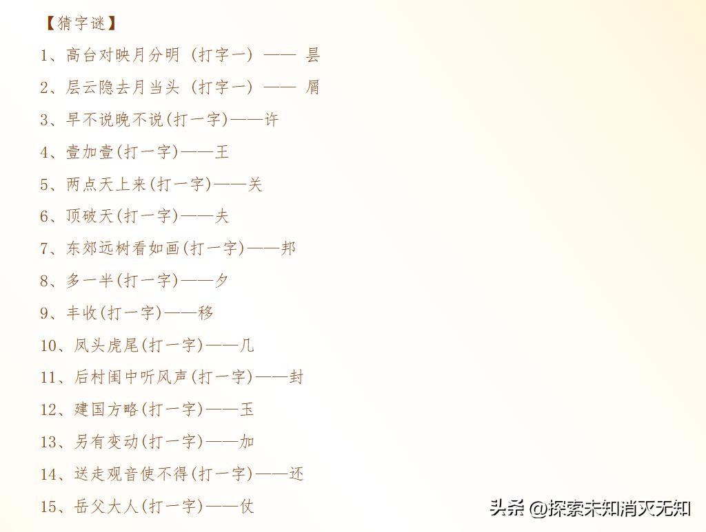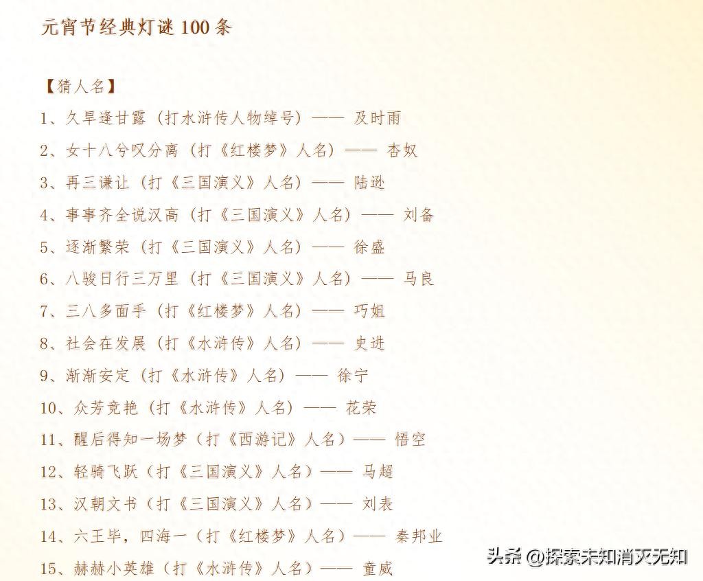 元宵节各类经典灯谜100条