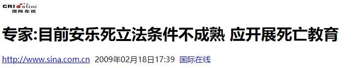国际在线:2009-2-18《专家:目前安乐死立法条件不成熟 应开展死亡教育》