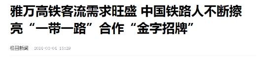 2、 极目新闻:雅万高铁客流需求旺盛 中国铁路人不断擦亮“一带一路”合作“金字招牌”