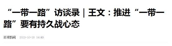 4、 澎湃新闻:“一带一路”访谈录|王文:推进“一带一路”要有持久战心态