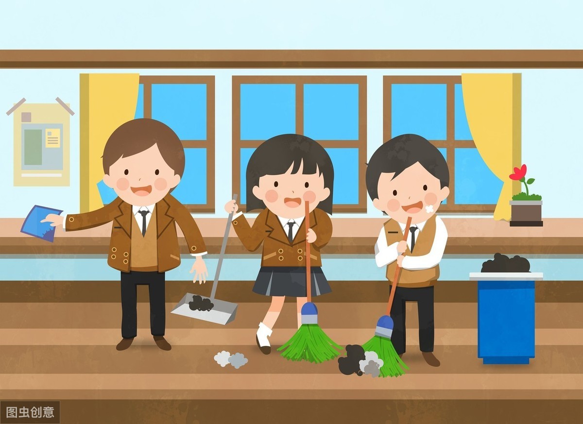 又到了星期五的大扫除时间,老师把小月、小强、小天留下来打扫教室卫生。
