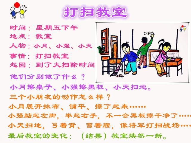 打扫教室是二年级看图写话中经常出现的题材之一,相信很多小朋友已经写过类似题材的看图写话了,那么今天再和丹格教育老师一起来回顾一下这类看图写话应怎样去写作。