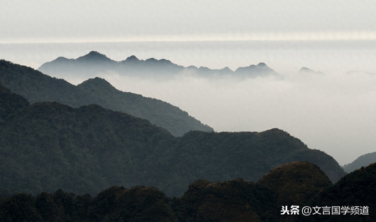 从正面、侧面看庐山山岭连绵起伏、山峰耸立,从远处、近处、高处、低处看都呈现不同的样子。