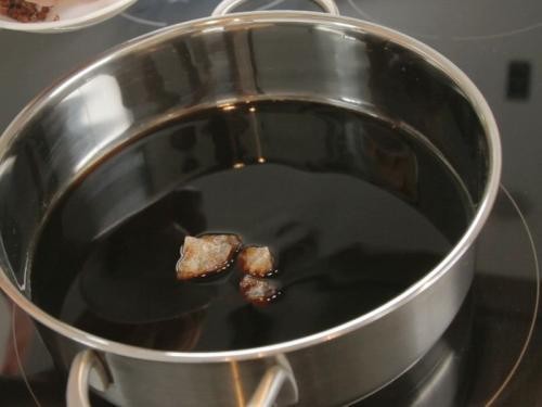 (3)、将油温降到6成热时,放入麻椒、香叶3片、桂皮8克、盖上锅盖,静置5小时,花椒油就做好了。