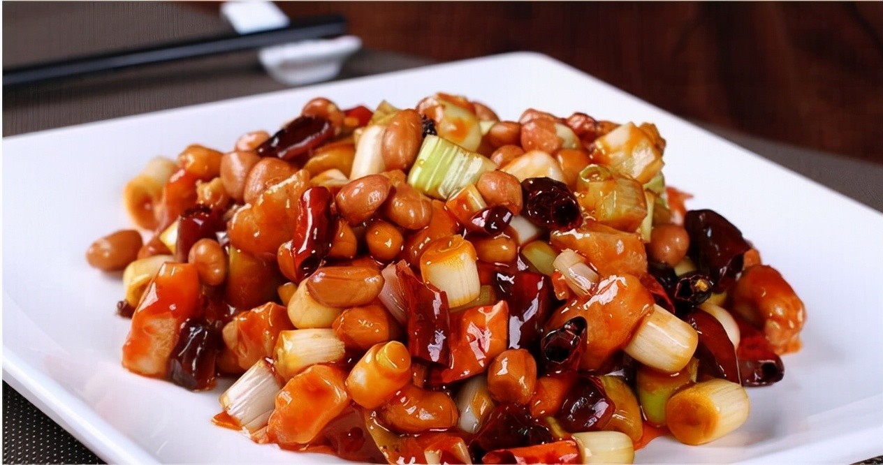 7.炒锅置旺火上,下尜油烧热,下辣椒廿炒成棕红色时,下花椒微炒,加适最猪化油,下鸡丁炒散,放入姜、蒜、葱稍炒,烹入芡汁,迅速翻簸并加入花生仁簸匀,起锅装盘即可。