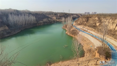 东区道路设施基本建设完成,局部优化中,园中道路交错,转了一通,迷路之际误入一片小树林,走到崖边,突然看到一潭碧水,瞬间感觉神清气爽,拍了几张图片,如果带无人机俯拍简直无敌!