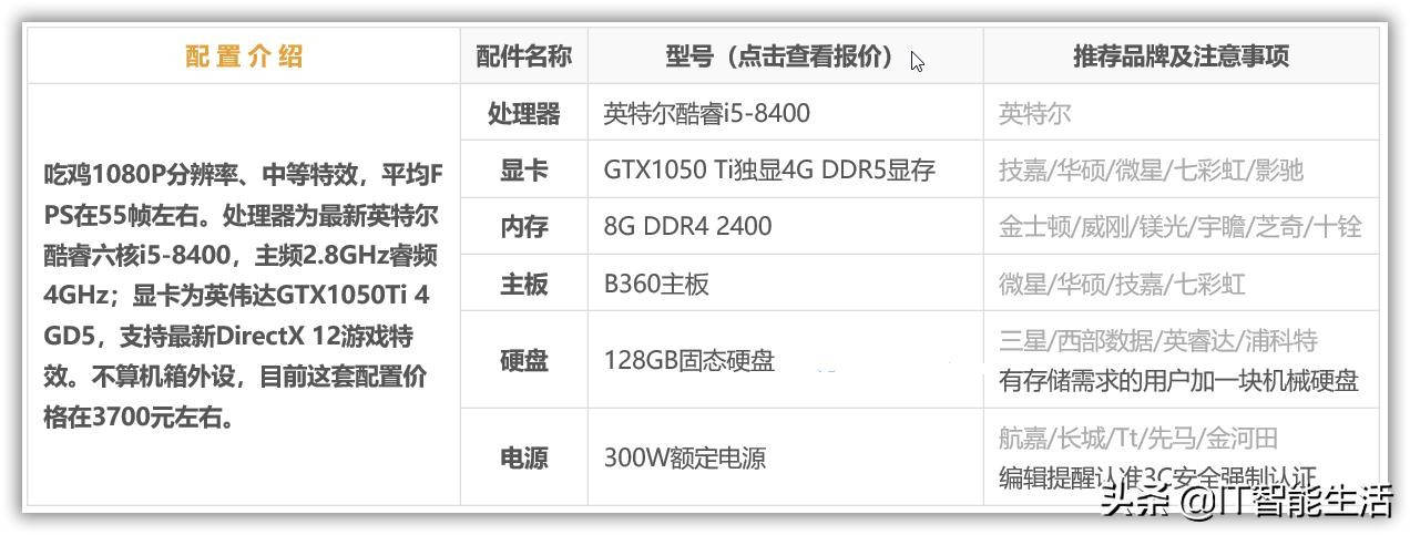 今天给大家推荐几款玩绝地求生吃鸡等游戏电脑配置,希望对不知道如何下手的朋友们一个借鉴参考的机会;