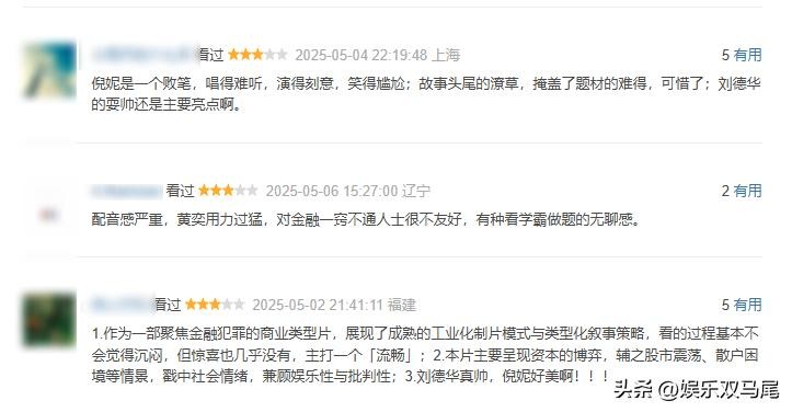 由“华仔”刘德华、欧豪、倪妮出演,是一部典型的典型金融犯罪片,讲的是股市黑幕和人性博弈,邱礼涛导演的港片味道挺浓。人话叫能看到很多金融港片的影子...