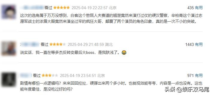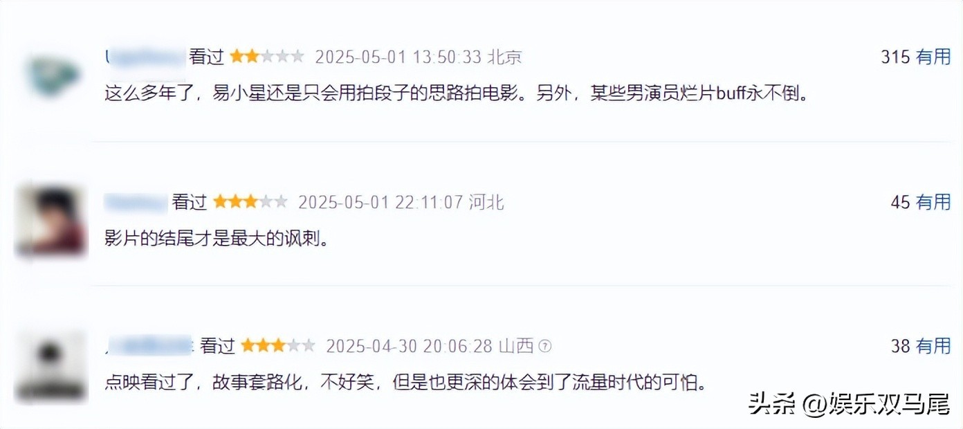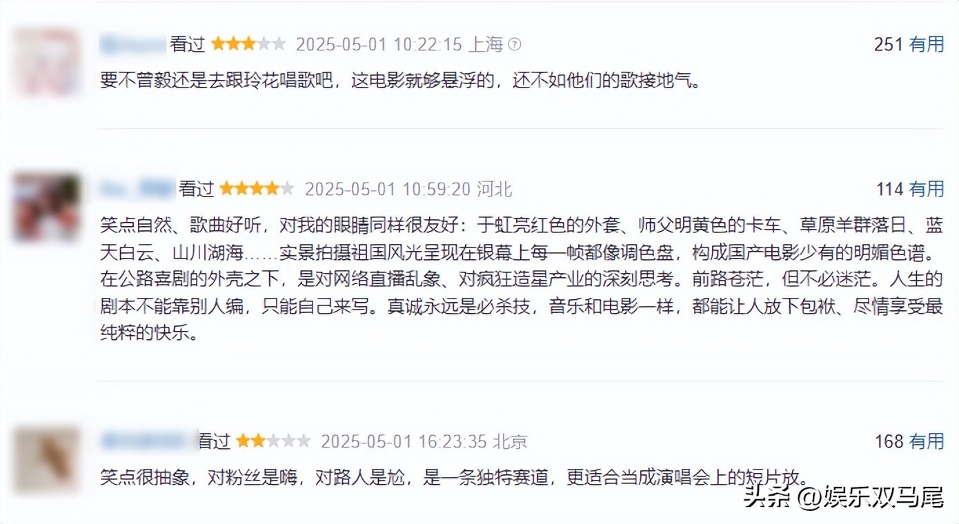 但是观众评价两极分化,豆瓣给了 6.7 分,有人觉得剧情有点套路,但也有人被真实故事打动,尤其是女性观众。前几天马丽还在采访中哭诉被与沈腾的CP传言折磨的不行,也是增添了几分喜剧色彩。