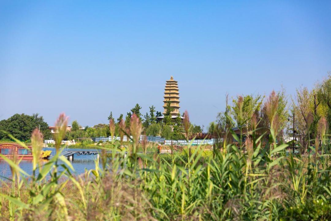 时来易失,赴机在速。2016年5月项目正式启动,经过一年多的建设,渼陂湖完成了一道高分抢答题:2017年国庆节,萯阳湖景区作为渼陂湖一期起步区正式对外开放,一经面世便艳惊四座,吸引了20余万游客。2018年元旦,渼阳湖实现蓄水450亩,与已建成开园的萯阳湖接连,整体形成了680亩水面景观。2018年9月,渼陂湖一期文化单体主体建设全部完成,以渼陂湖文化为脉络,由张锦秋院士担纲设计的汉唐人文景观建筑群已初具雏形。