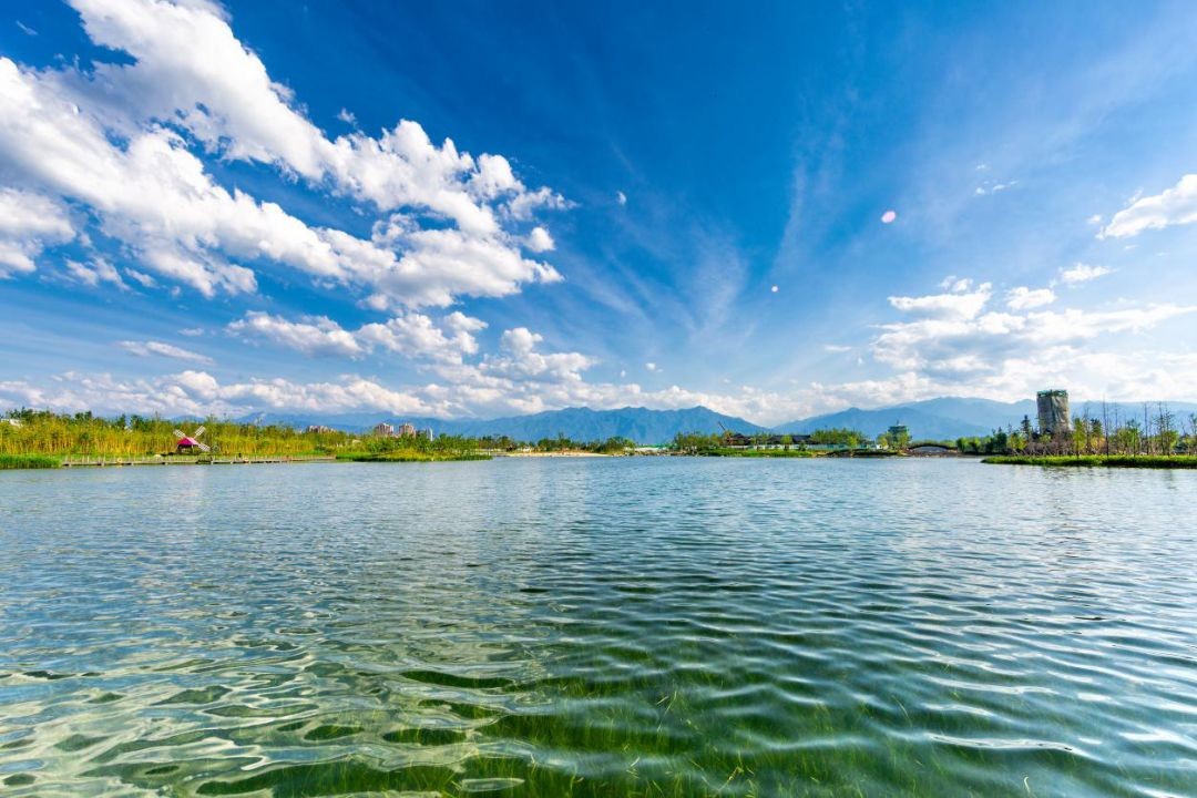 浩浩乎,八水绕长安,荡荡兮,渼陂映秦川。西安渼陂湖水系生态文化旅游区的建设,有效改善了周边地区的自然生态环境,累计栽植水生植物约18万平米,新增景观绿化约25万平米。鸟儿悄落水畔,临水照花、柔如彩虹,景区内翠竹屏障,芦苇随风摆动。湖光山色两相和,渼陂恰似江南春。