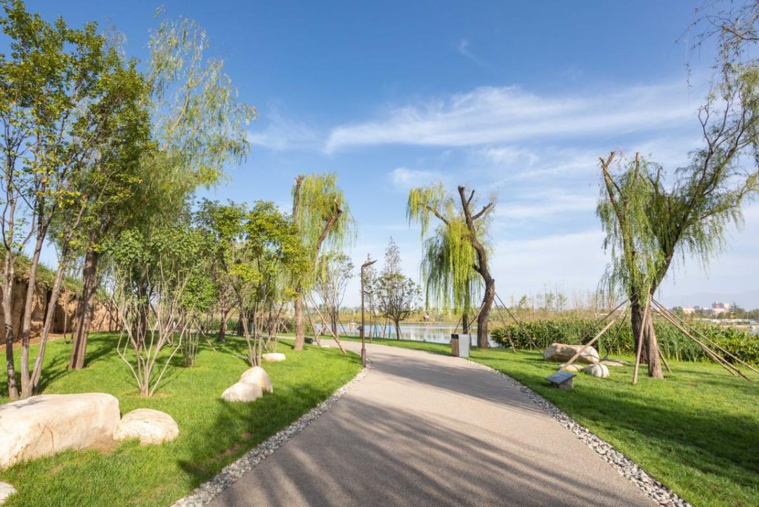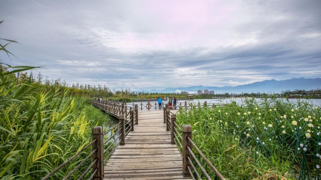 渼陂湿地:独立的自行车道和慢行系统蜿蜒于林荫掩映之间,运动的身影、游人的欢笑折射出这里的品质;