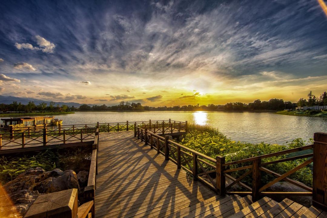 结合鄠邑区未来发展规划,西安渼陂湖生态文化旅游区将扩展至69平方公里。以渼陂湖为核心,以涝河为发展轴,形成两核、两轴、多片区的规划布局,一幅山水林田湖的写意画卷,即将闪耀丝路新起点。