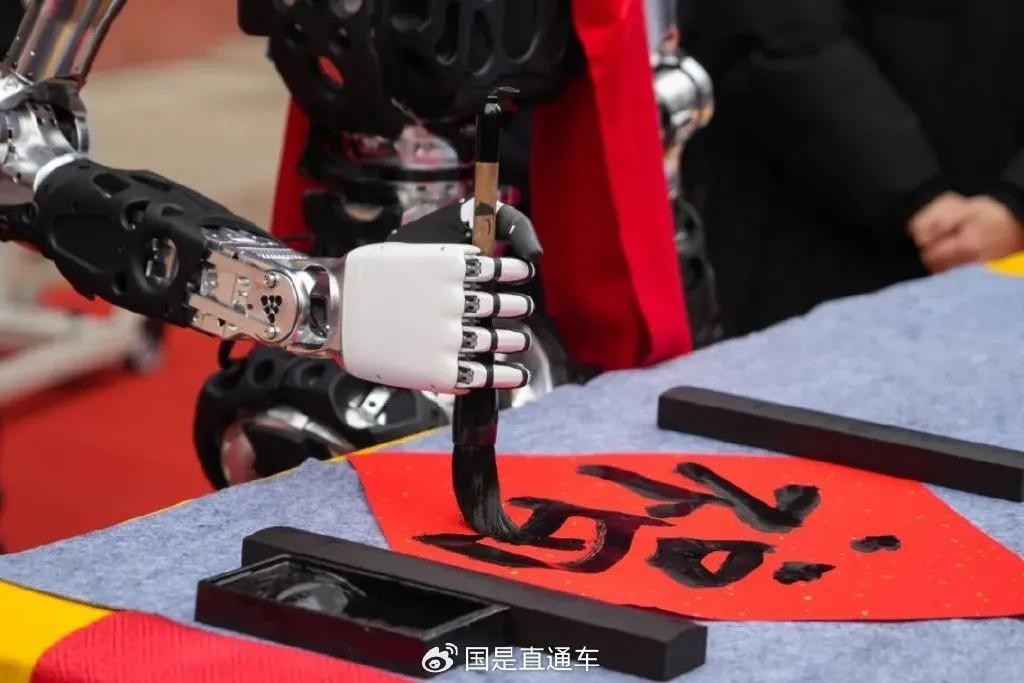△人形机器人书写福字。(资料图)中新社发 熊然 摄