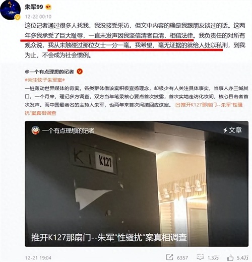 由于案件的公开信息大众已经了然于胸,这里便不再进行多余的赘述,同时,在进行相关内容整理时,我们不妨先打乱顺序,先看看朱军对于此事的首次回应,相信这也是外界最为关心的内容。