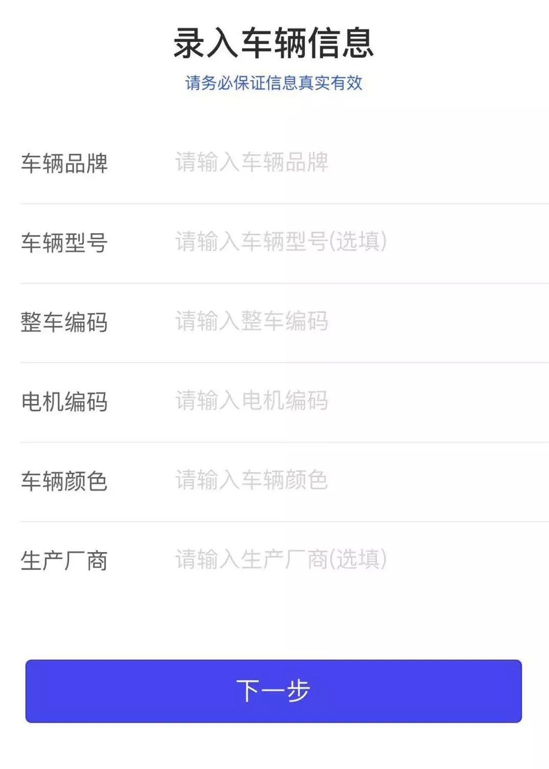 Step4. 根据自己车辆情况进行登记备案