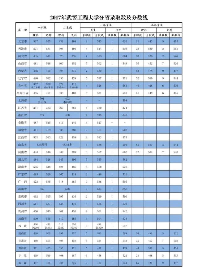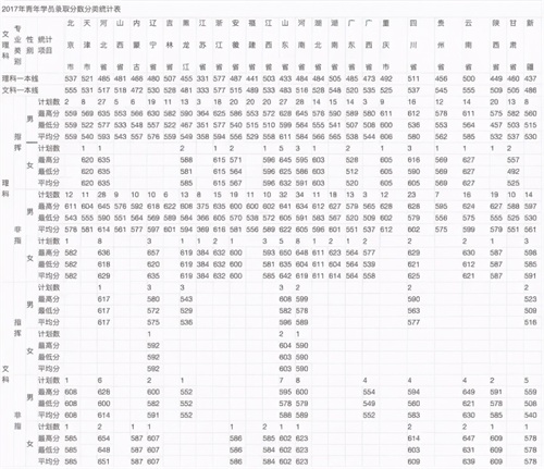 25、武警警官学院2017年在各地录取分数线: