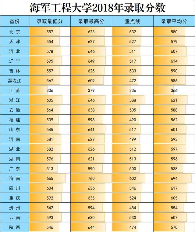 12、海军工程大学2017-2019年在各地录取分数线