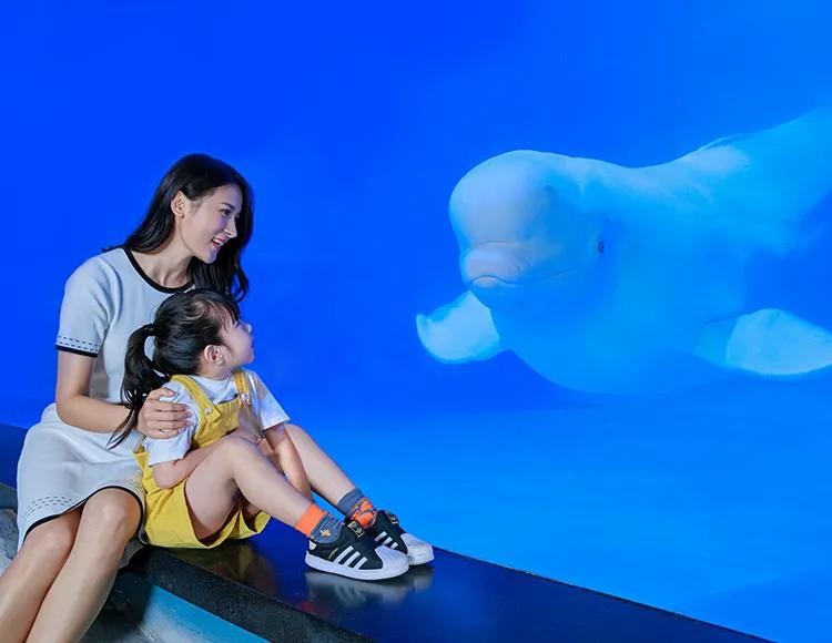 来到海洋世界与小白鲸互动,交不一样的“朋友”