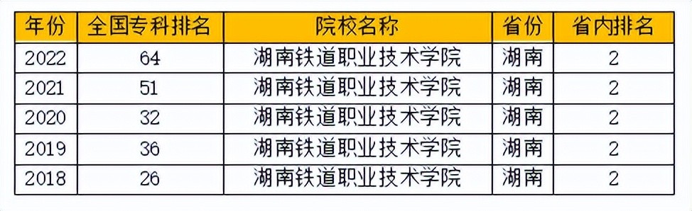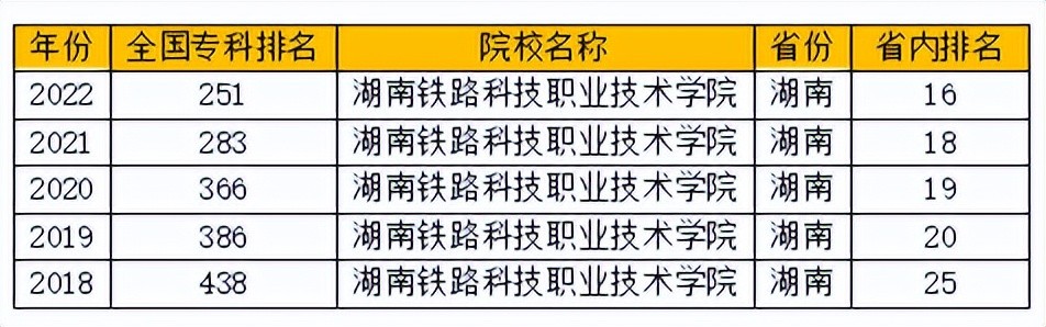 根据公开排名资料整理显示,近五年湖南湖南铁道职业技术学院国内排名逐渐靠后,省内排名较稳定,一直保持在第二名的位置。学校在国内、省内教学能力较强,尤其是省内绝对老二的存在。