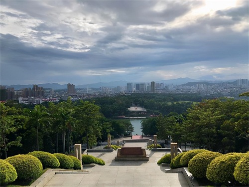解放街西头穿过中山桥,便是百色起义纪念园。从纪念园西门拾级而上,前行三四百米,为百色纪念碑园。纪念碑园往前走三百多米为右江民族博物馆。右江民族博物馆再向前走一百多米为铜鼓广场、世纪铜鼓楼。铜鼓楼往山下走,是红军桥。越过红军桥,往山上走是邓小平手迹碑林。走到山顶,百色起义纪念馆巍峨矗立其中。