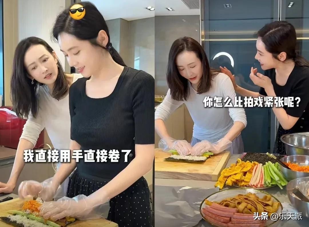 后来王鸥还帮忙打下手,并且还现场学习了一下紫菜包饭