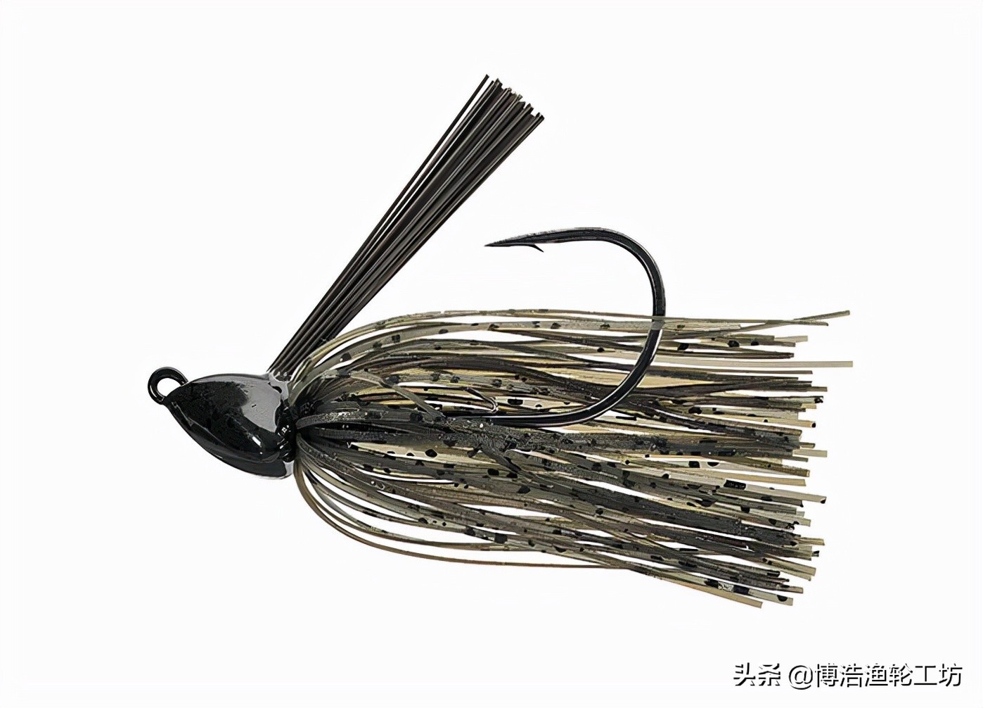 5、Flipping jigs,大的鱼钩和arky风格头部,扁平的香蕉形状和一个沉重的裙摆护罩。这种铅头钩很容易穿过水草,到达鲈鱼藏身之处。定线长荡抛flipping方法,反手将拟饵通过钟摆式轨迹投入近距离钓点,更快速地下沉到钓点,风速较大时更好。