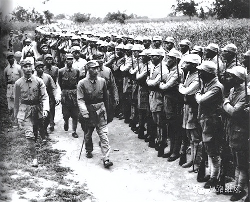 聂荣臻在杨成武陪同下检阅晋察冀军区一分区部队