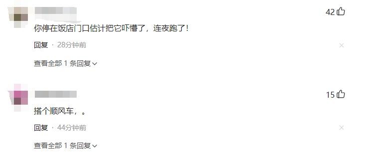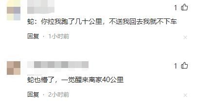 据悉,十分无奈的是当时路边停车后这条蛇打双闪赶不走、用树棍挑也挑不走,它直接钻到了车灯罩里不出来,一直到第二天早晨的时候才自己走了。从王先生当时拍摄的照片来看,这条蛇确实盘踞在车头脑袋一摇一晃。惊险之余网友们对此也开玩笑表示:“蛇:我就搭了个顺风车”、“你停在饭店门口估计把它吓懵了,连夜跑了”......等等。