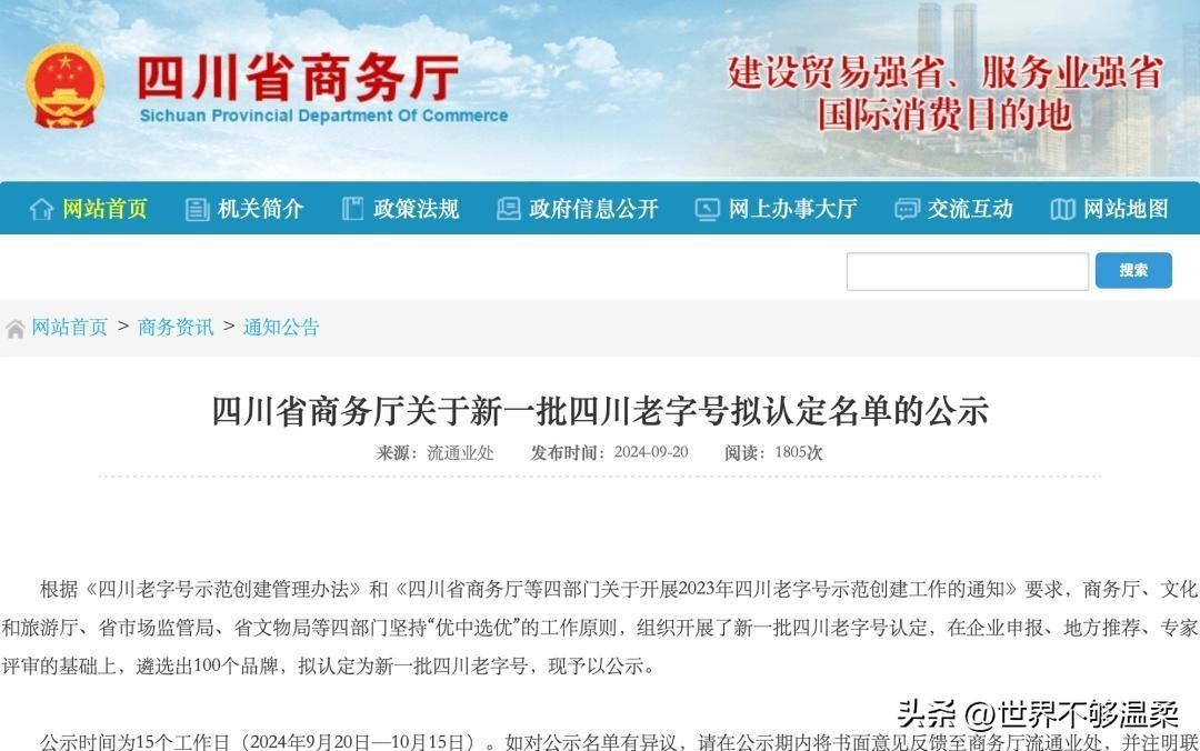 老字号,承载着岁月的沧桑,也传递着时代的温度。四川省商务厅最近公布了新一批四川老字号拟认定名单,100个品牌脱颖而出,即将获得这份殊荣。这份名单不仅仅是一纸公文,更是对传统文化的致敬,对匠心精神的褒奖。