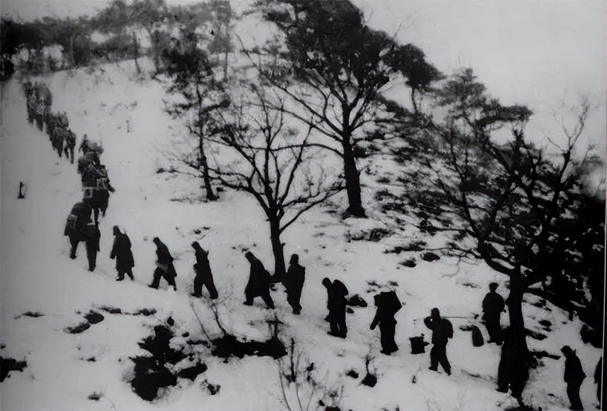 战士们在一口炒面、一口雪的艰难困境当中,死死咬住美军不放。