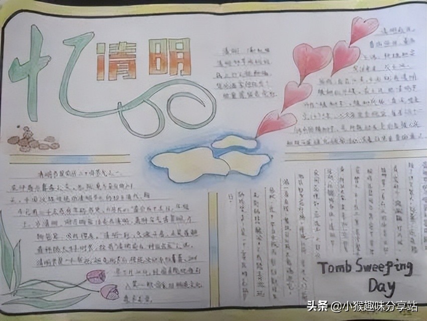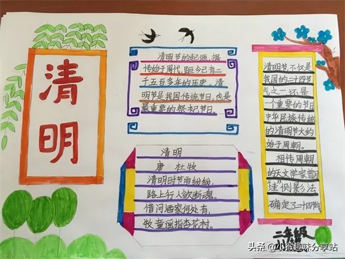 作为新时代的少年,同学们要对传统节日心怀尊重,并将之传承下去。作为小学生的我们,该如何传承呢?最简单的方式就是值此节日之际,画上一幅手抄报,写上你对清明节的了解与认知,亦或是感情与感悟,这既是过节日的仪式感,也能锻炼自己的动手画画能力与语言组织能力。