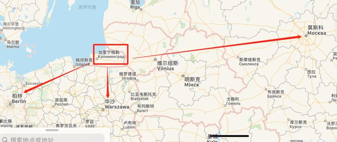 现在从地图上看加里宁格勒,随着波罗的海三国的独立,这里成了除了圣彼得堡外的优良出海口之一;处于中欧和北欧的交界地带,距离波兰首都华沙仅有230公里左右,距离德国首都柏林约为460公里,重要战略意义更加凸显。