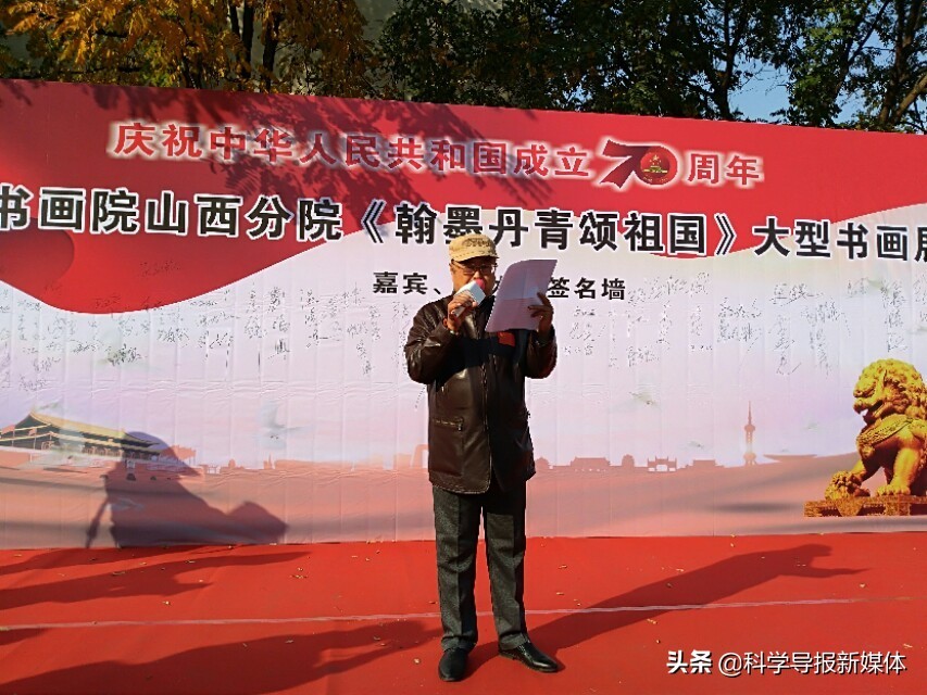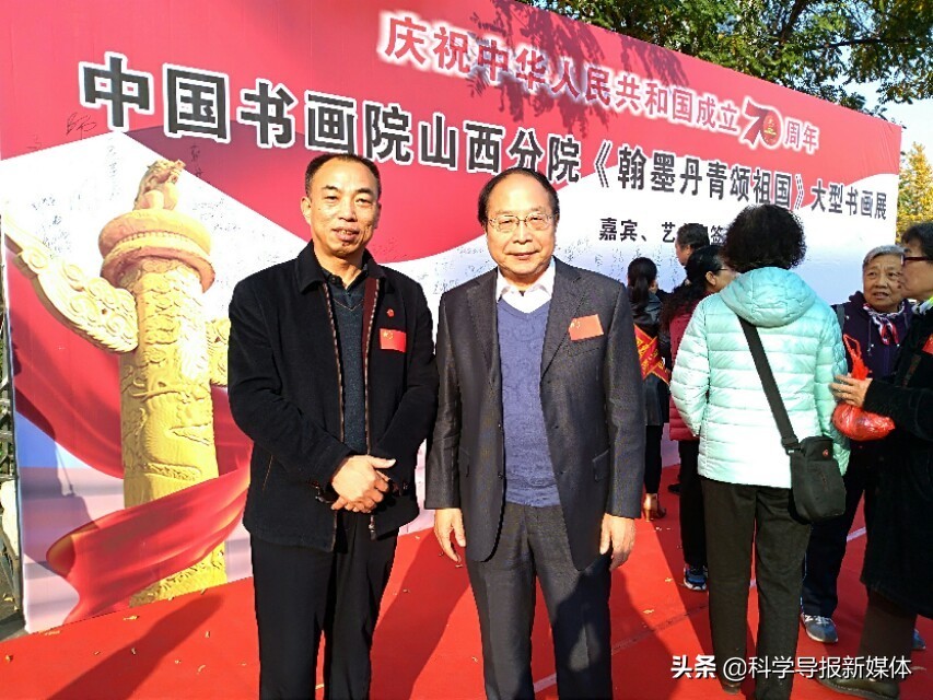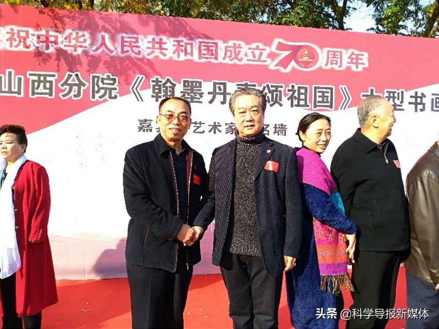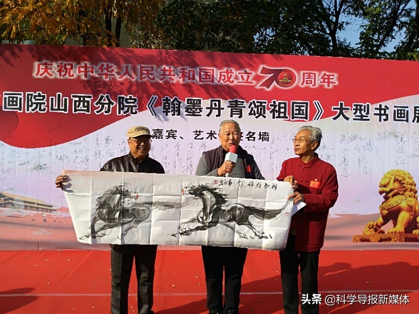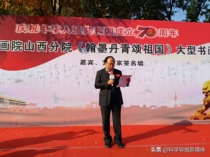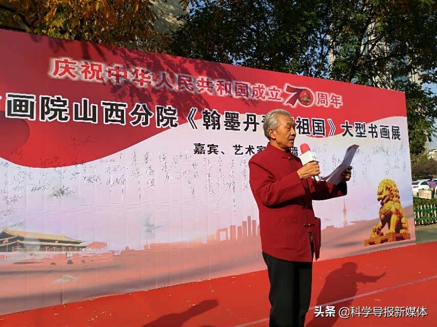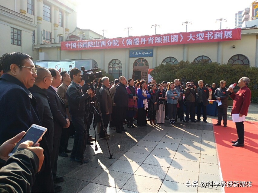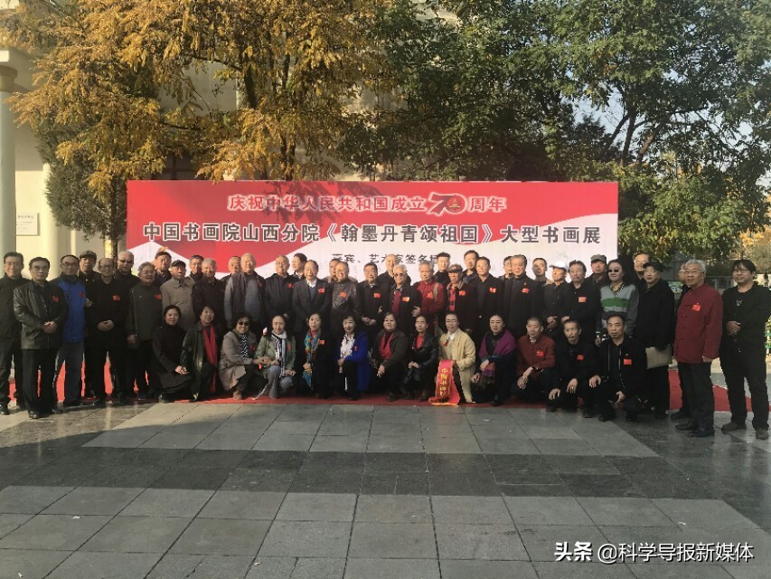 11月5日中国书画院山西分院《翰墨丹青颂祖国》大型书画览在省城太原工人化宫山西职工画廊隆重举行!山西书画界老一辈艺术家、各书画院同行道友老师、太原老三届同学会、军队转业的老战友、热爱书画艺术的企业界精英朋友同山西分院的艺术家老师近三百余人欢聚在工人文化宫广场隆重举行书画展开幕式活动,一首《我和我的祖国》的赞歌表达了艺术家们热爱祖国的心声!