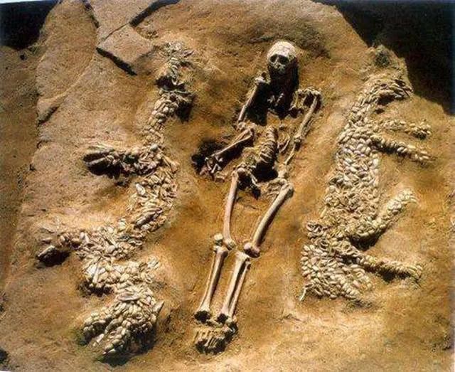 龙在现代人心目中的形象有目共睹,不再累述。既然是探讨龙的起源,就得先看看龙在我们祖先的心目中是什么样的?下图展示的就是6400多年前,仰韶文化人群墓葬中出土的中华第一龙“濮阳蚌壳龙”。它的形象除了头上没角,身形不像蛇一样修长,几乎与现代龙没有区别!
